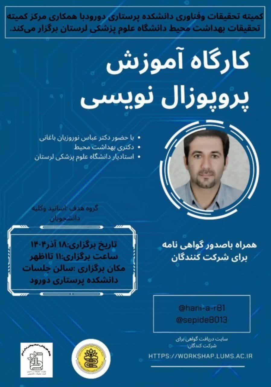 کمیته تحقیقات و فناوری دانشجویی دانشکده پرستاری دورود با همکاری دانشکده بهداشت محیط دانشگاه علوم پزشکی لرستان برگزار میکند